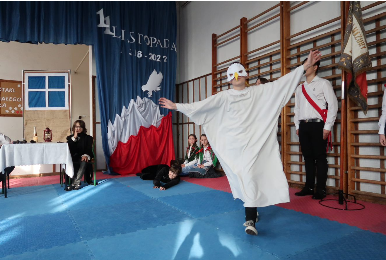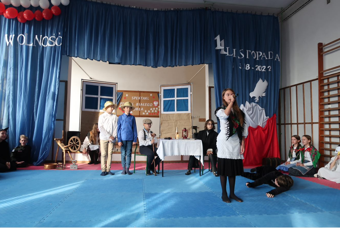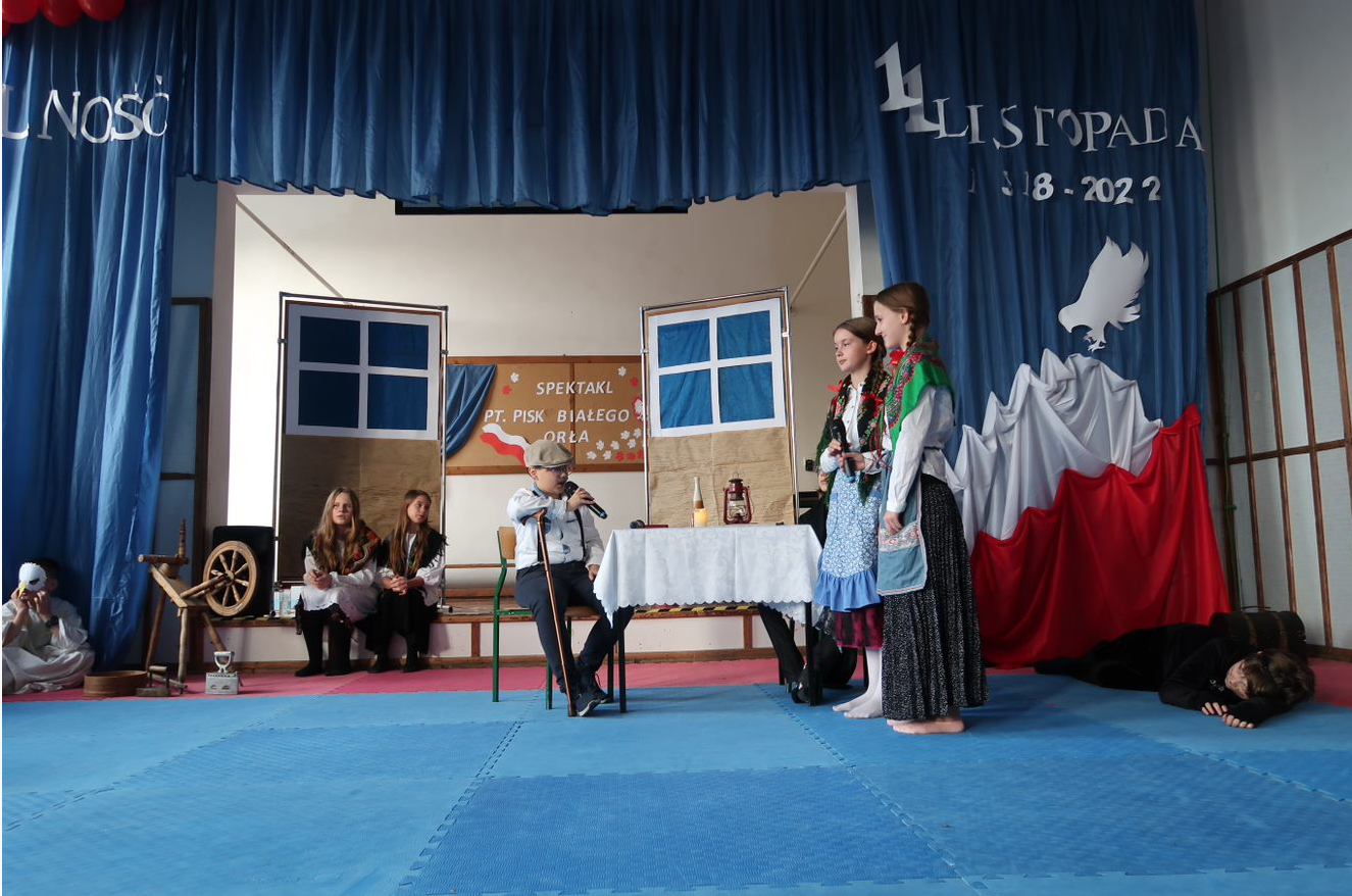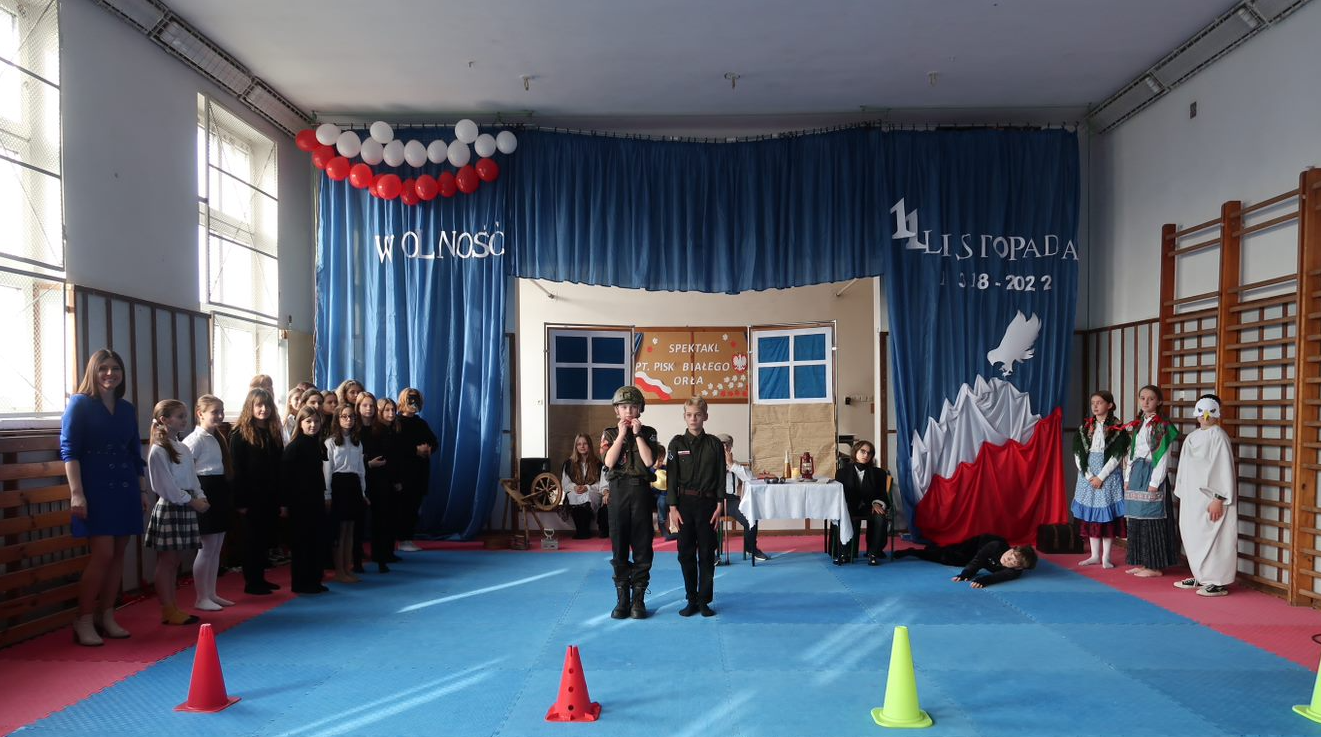 10 listopada społeczność Szkoły Podstawowej nr 7 w Olsztynie świętowała  104 rocznicę odzyskania przez Polskę niepodległości. Z tej okazji uczniowie klasy 5 c wystawili spektakl pt. Pisk Białego Orła, który upamiętniał ważne wydarzenia w życiu każdego Polaka.