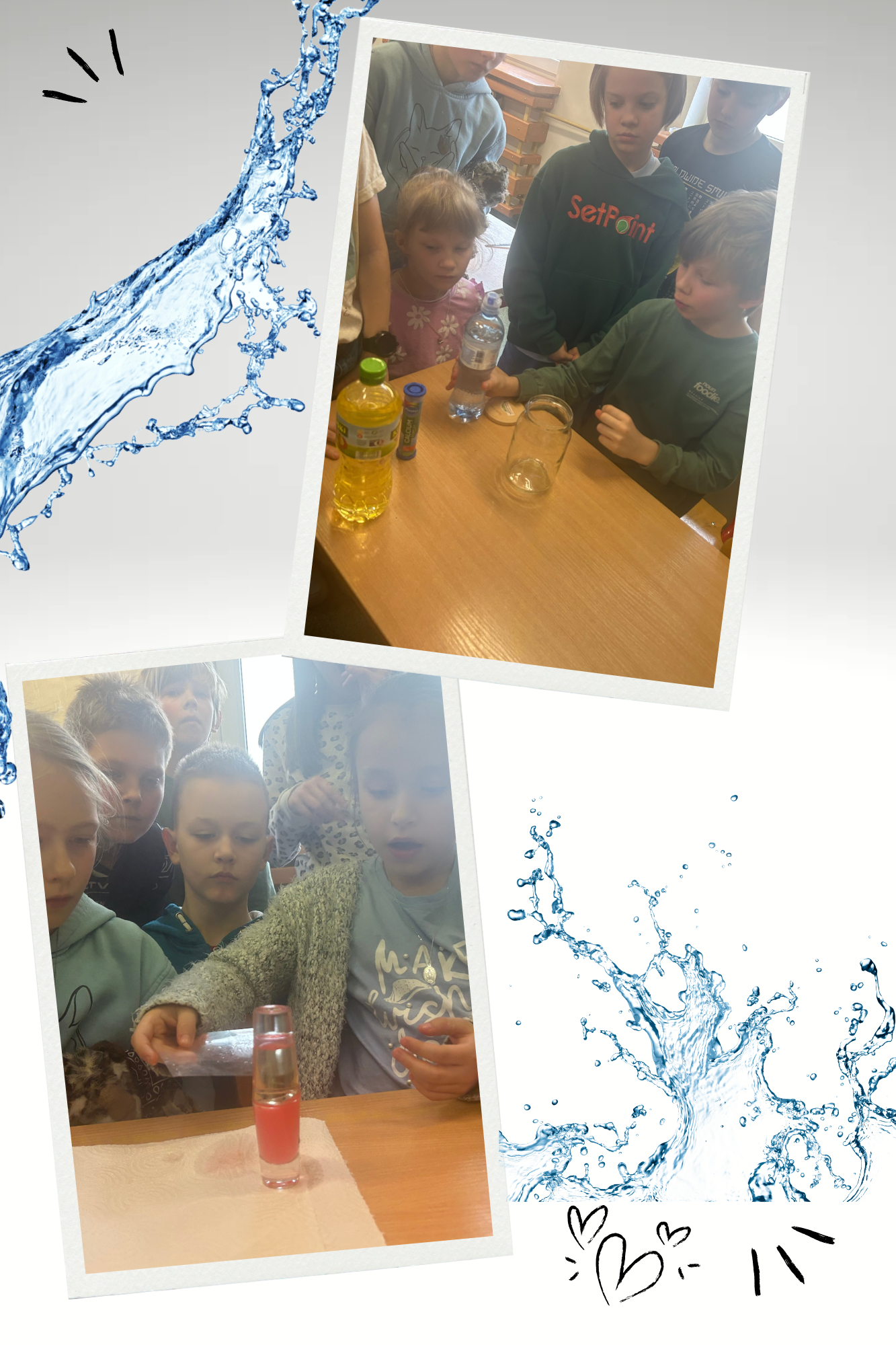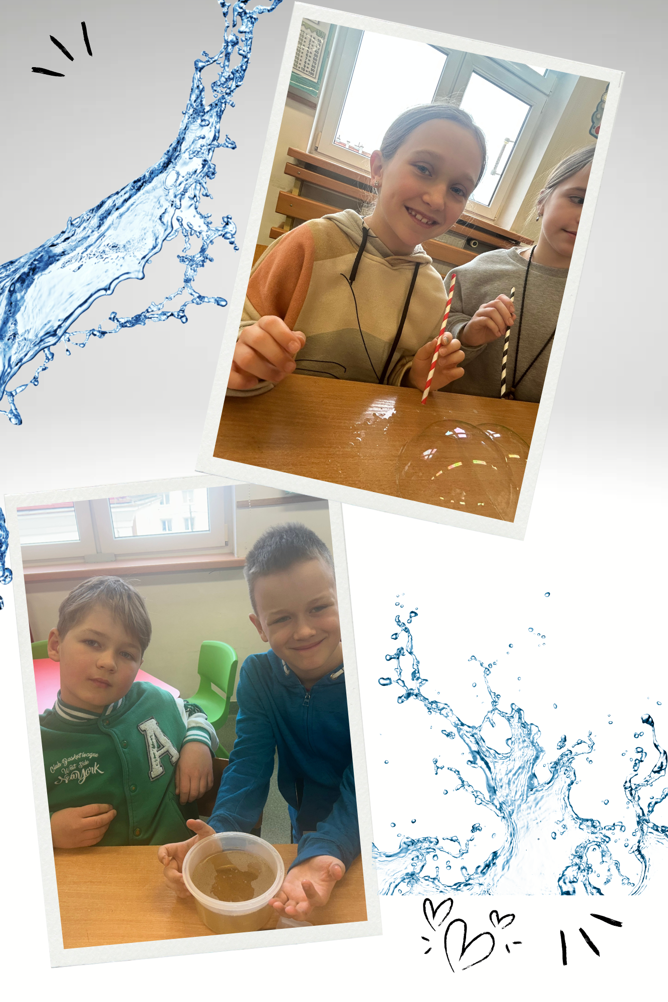 Z okazji obchodzonego niedawno Dnia Wody uczniowie klasy 3B przeprowadzili fascynujące eksperymenty z użyciem tej drogocennej cieczy. Podczas zajęć dzieci nie tylko świetnie się bawiły, ale także poprzez doświadczenia, poznawały właściwości wody i jej znaczenie w naszym życiu. Uczyły się również cierpliwości – nie każdy eksperyment udał się za pierwszym razem, ale każdy wytrwale dążył do celu. Uczniowie wiedzą także, jak co należy robić, aby wody starczyło dla przyszłych pokoleń. To była wspaniała lekcja przez zabawę, która na długo zostanie w pamięci, bo woda to skarb!