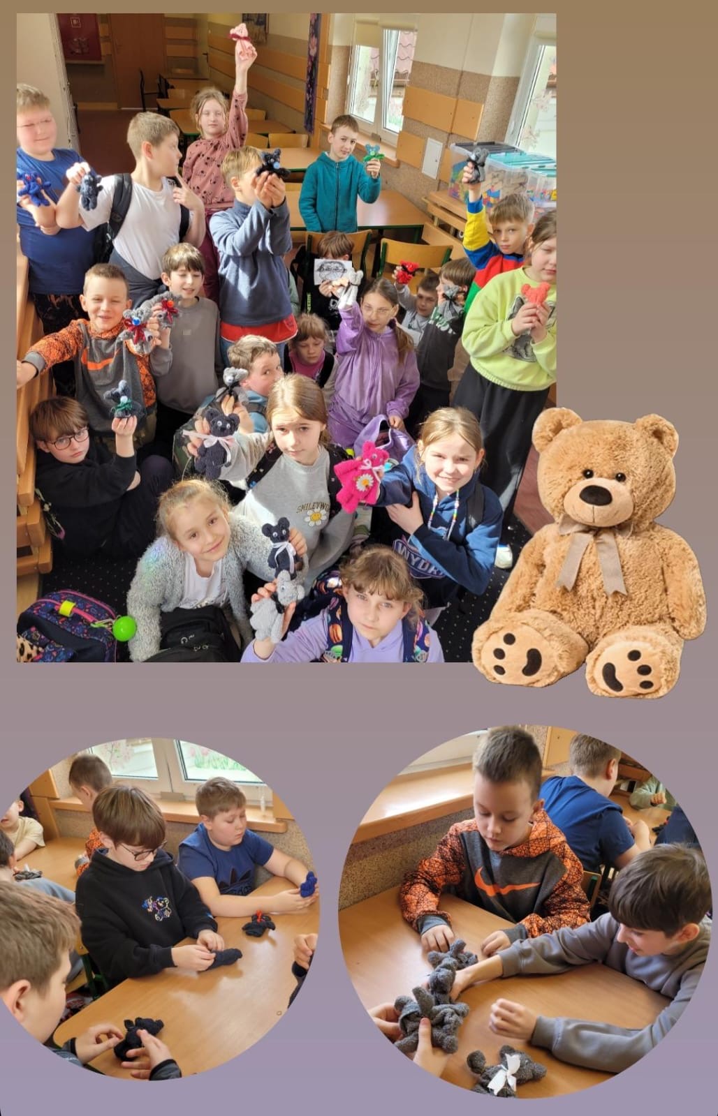 Na koniec wykonalismy własne misie wykorzystując do tego małe kwadratowe ręczniki. Radości nie było końca a efekty przeszły nasze najśmielsze oczekiwania! ![]()