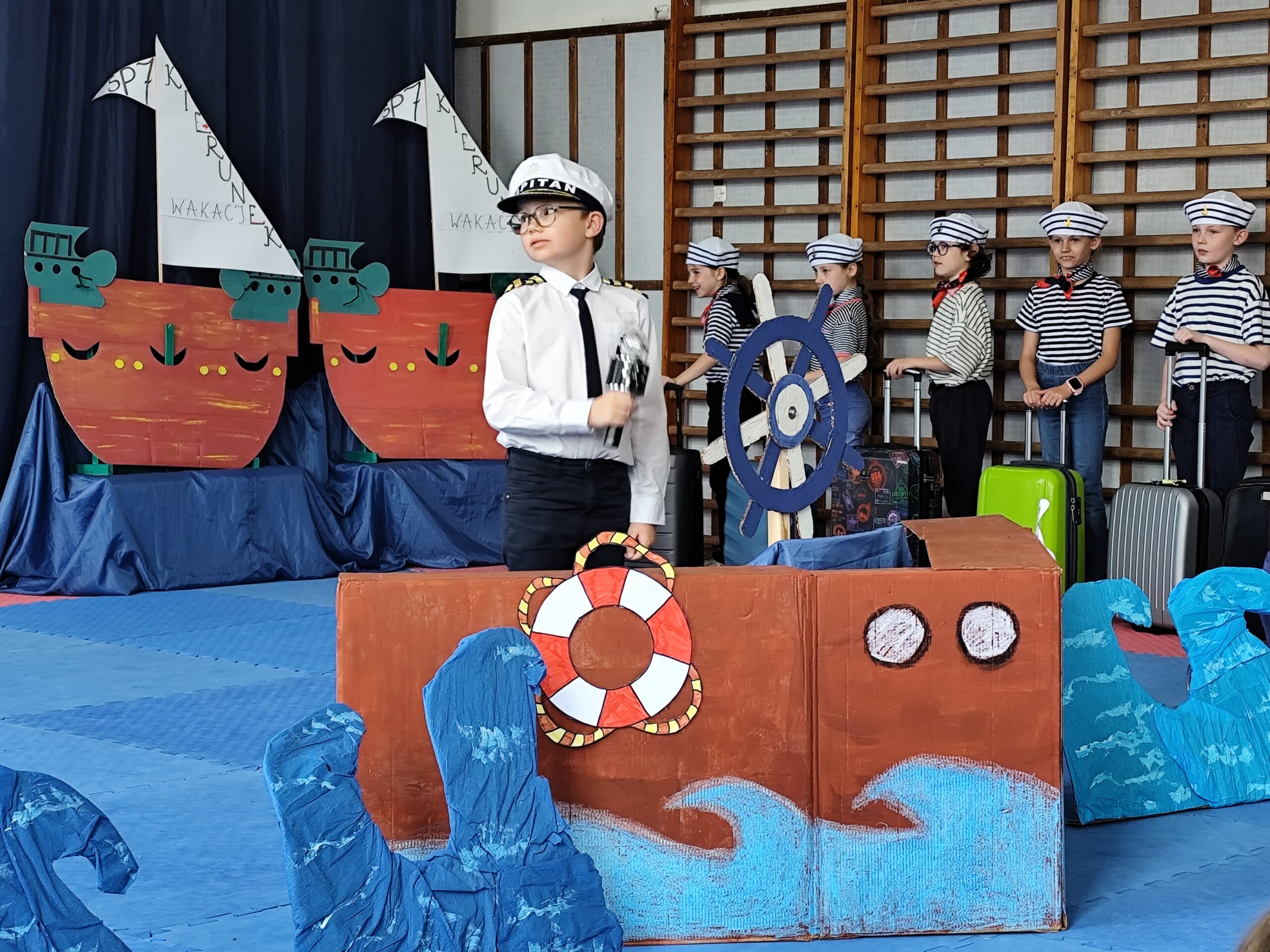 Tuż przed zakończeniem roku szkolnego uczniowie klasy 2C zabrali nas w wyjątkową podróż – „Bezpieczny wakacyjny rejs”. Barwne przedstawienie w stylu morskiej przygody połączone zostało z ważnym przesłaniem: wakacje to czas radości, ale również odpowiedzialności i troski o własne bezpieczeństwo.
