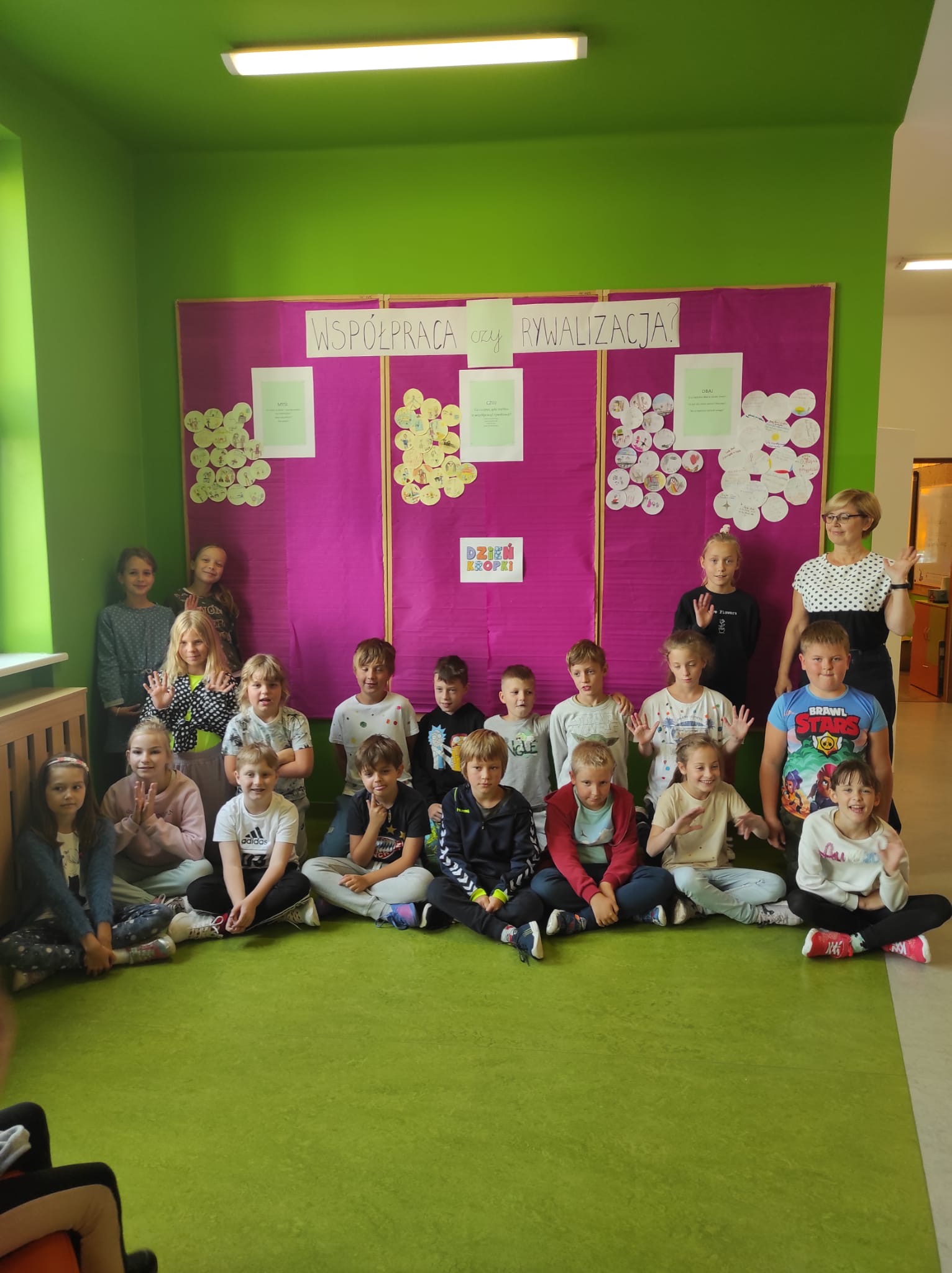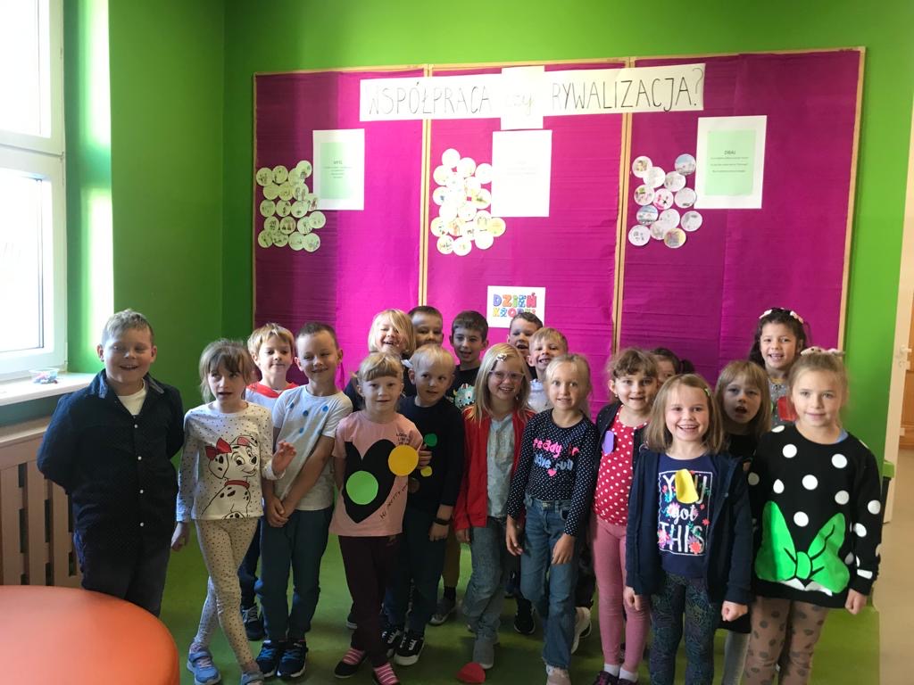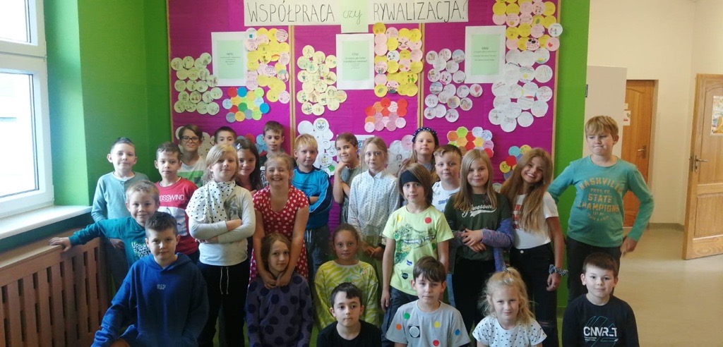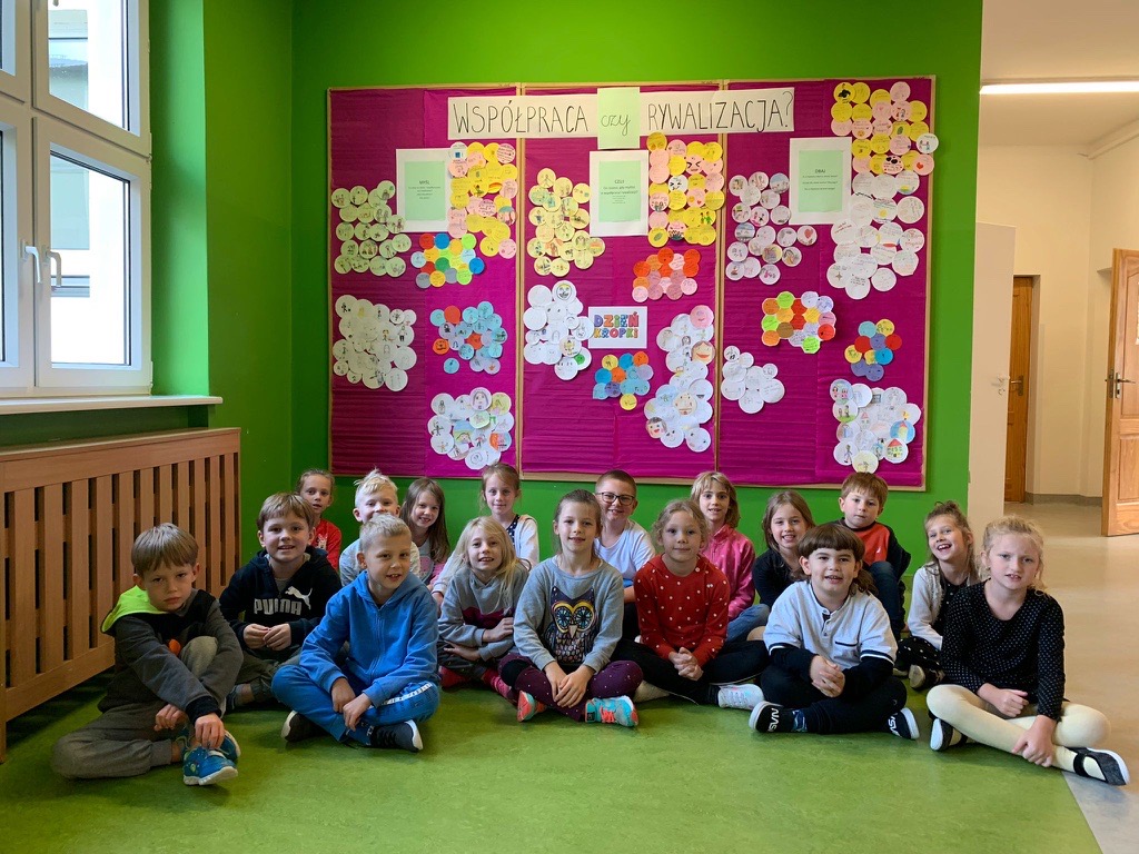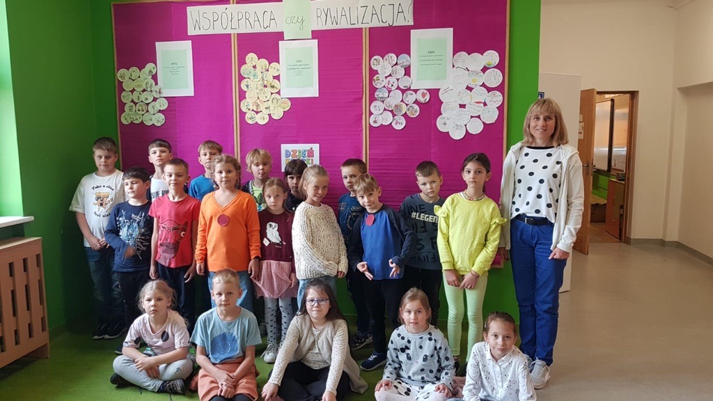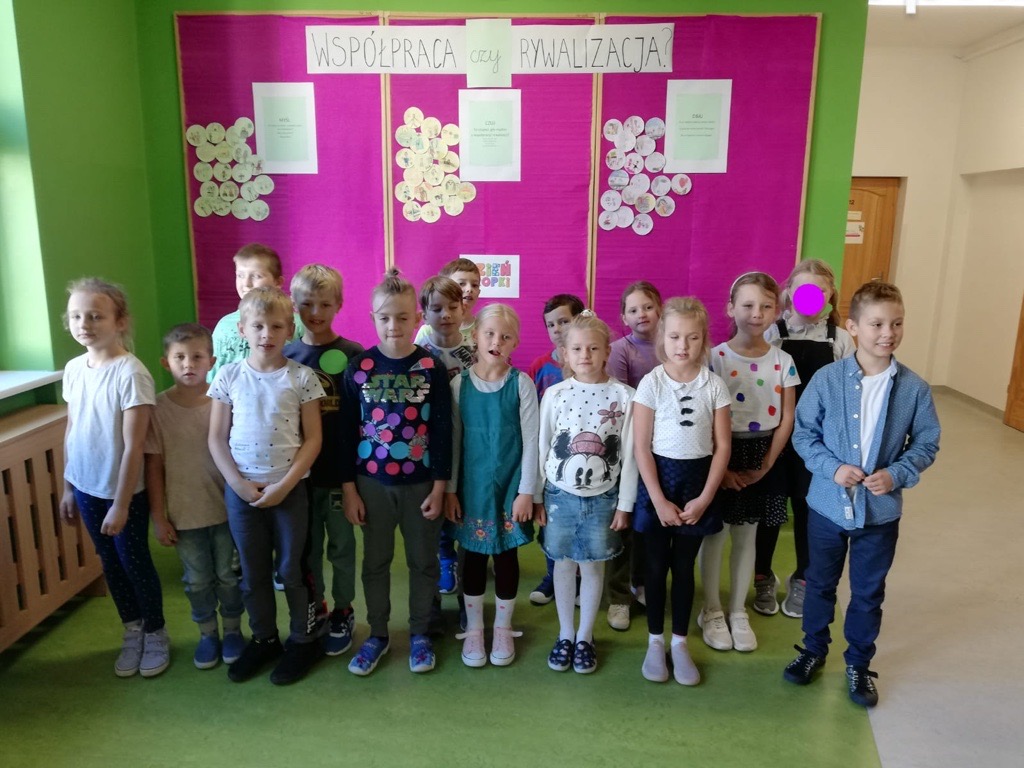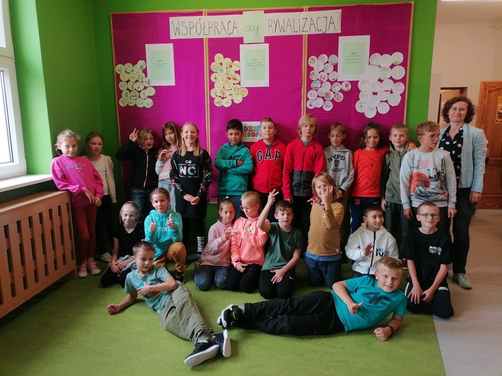 15 września jak co roku obchodziliśmy w Naszej Szkole Dzień Kropki, tym razem pod hasłem „Współpraca czy rywalizacja?”. Uczniowie pracowali w grupach stosując rutyny krytycznego myślenia. Rutyna „Myśl – Czuj – Dbaj” miała na celu uwrażliwienie uczniów na potrzeby słabszych, chorych, potrzebujących, a także uświadomienie znaczenia współpracy.