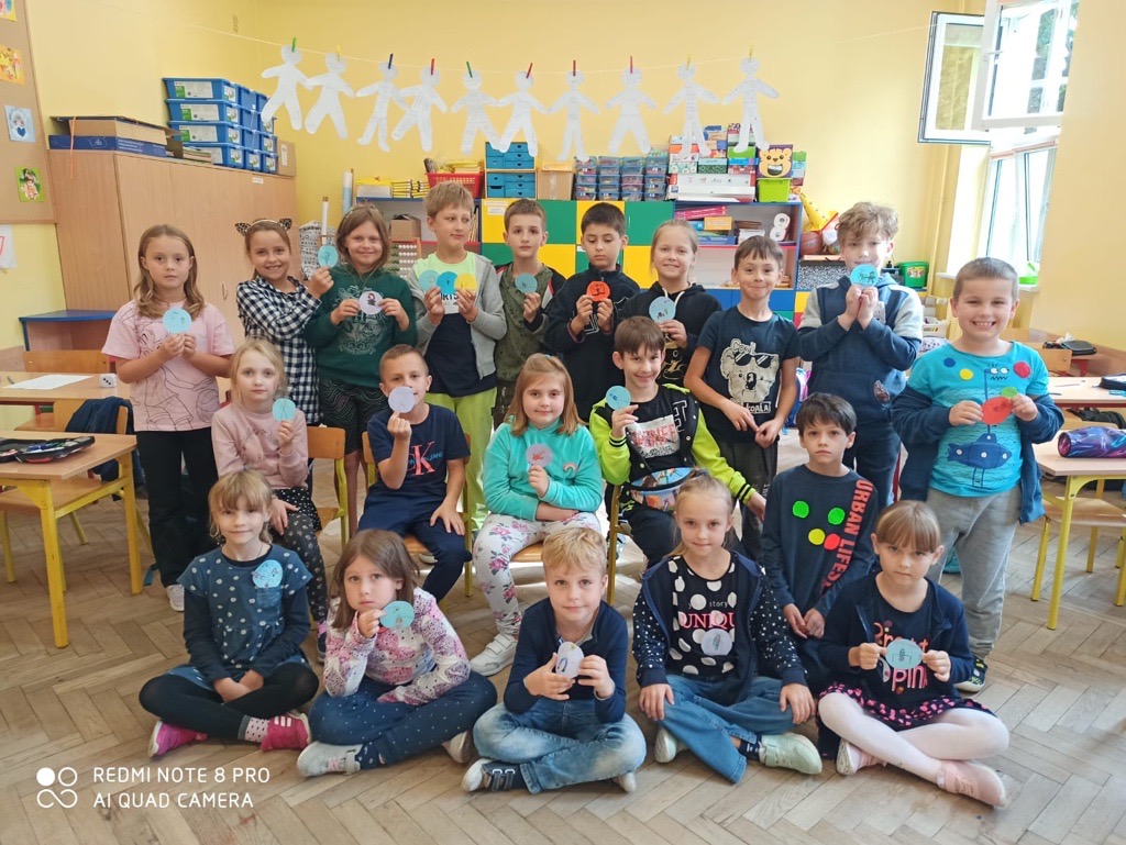 Ponadto uczniowie wykonali zakropkowany alfabet oraz tęczę i grali w „Kropkowe” gry, pobudzające do kreatywności oraz podnoszące wiarę we własne możliwości. Nie zabrakło również kropkowanych strojów.