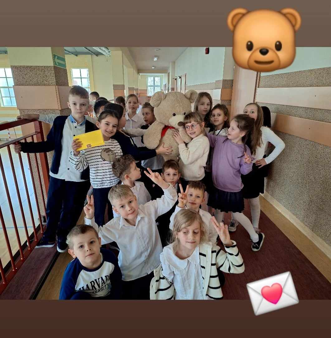 Największą atrakcją dnia było poszukiwanie ukrytego w szkole misia. Dzieci z zaangażowaniem rozwiązywały kolejne zadania, by odnaleźć tropy prowadzące do finału. Wspólna zabawa przyniosła wiele radości i uśmiechów, a także była doskonałą okazją do integracji klasy.