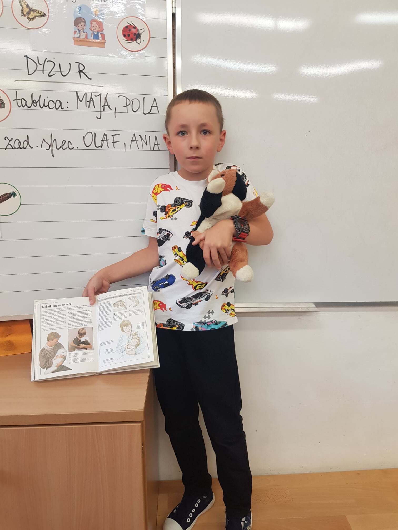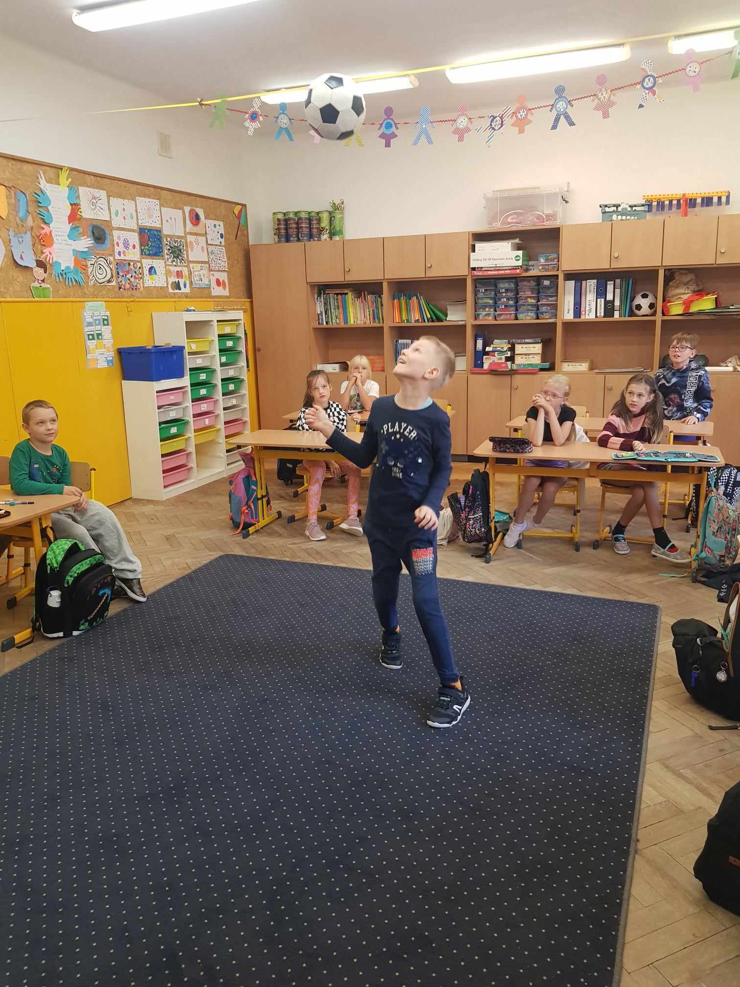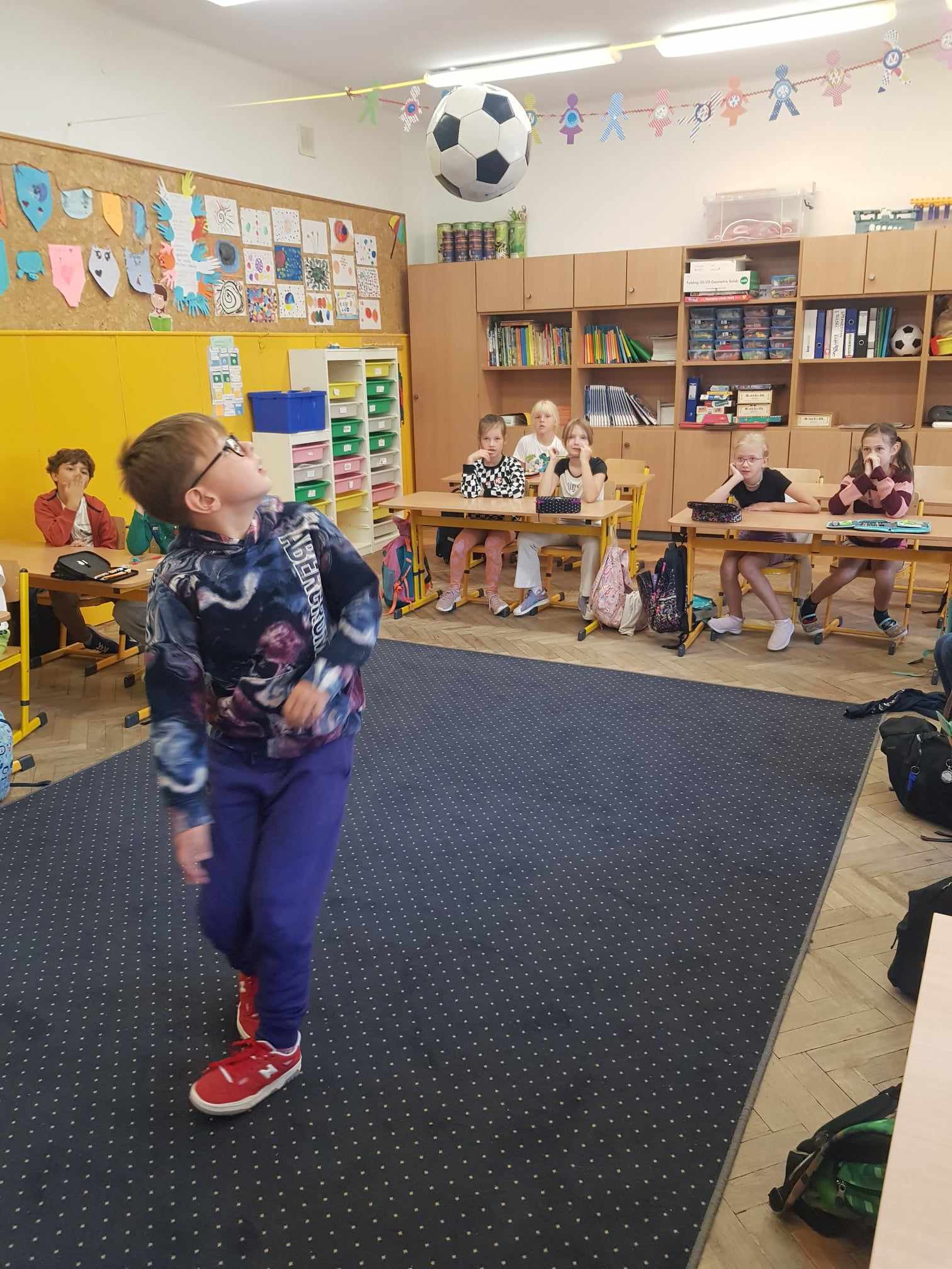 Dzień Kropki był inspiracją, aby zorganizować w naszej klasie dzień poświęcony talentom. Chętni mogli opowiedzieć o swoich ulubionych zajęciach, pasjach, zainteresowaniach i sukcesach. Mogli pokazać przedmioty z tym związane. Z ciekawością wysłuchaliśmy ciekawostek o kotach i psach – husky szary. Obejrzeliśmy własnoręcznie wykonaną biżuterię z gumek. Posłuchaliśmy o sukcesach, osiągniętych w zawodach w bieganiu i jeździe na motorze. Podziwialiśmy triki z piłką i pokaz umiejętności gimnastycznych. A na koniec Franek opowiedział o spędzaniu czasu z dziadkiem, czyli o łowieniu ryb.