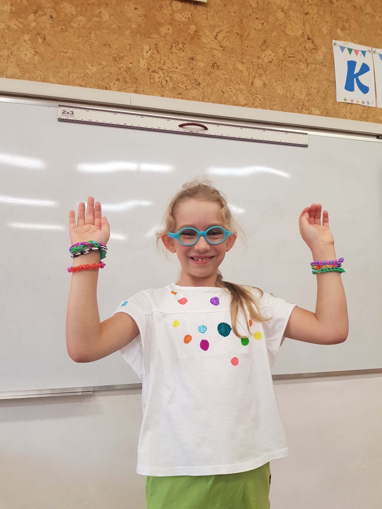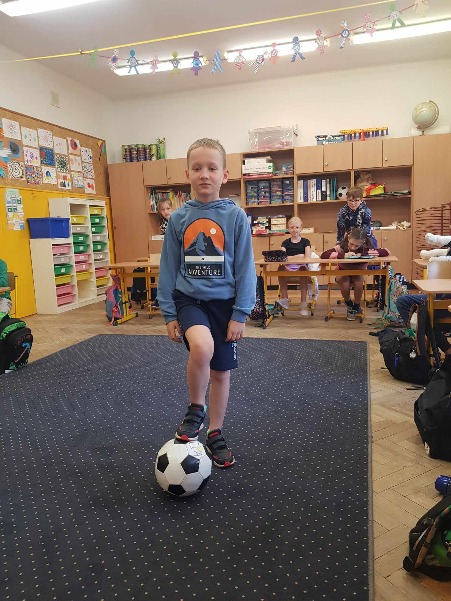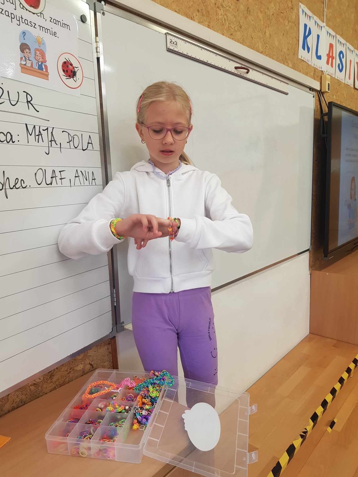 Dzień Kropki był inspiracją, aby zorganizować w naszej klasie dzień poświęcony talentom. Chętni mogli opowiedzieć o swoich ulubionych zajęciach, pasjach, zainteresowaniach i sukcesach. Mogli pokazać przedmioty z tym związane. Z ciekawością wysłuchaliśmy ciekawostek o kotach i psach – husky szary. Obejrzeliśmy własnoręcznie wykonaną biżuterię z gumek. Posłuchaliśmy o sukcesach, osiągniętych w zawodach w bieganiu i jeździe na motorze. Podziwialiśmy triki z piłką i pokaz umiejętności gimnastycznych. A na koniec Franek opowiedział o spędzaniu czasu z dziadkiem, czyli o łowieniu ryb.
