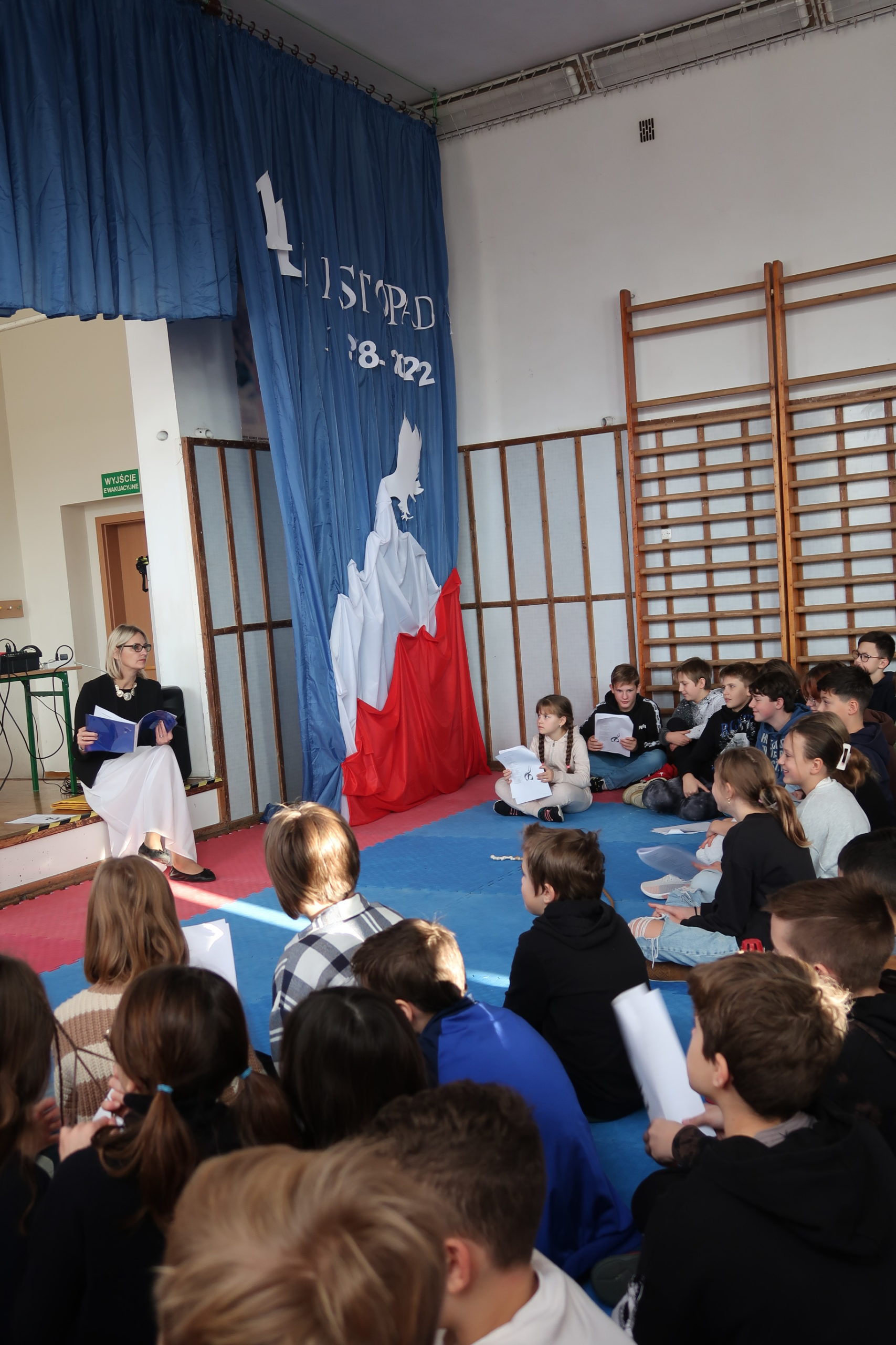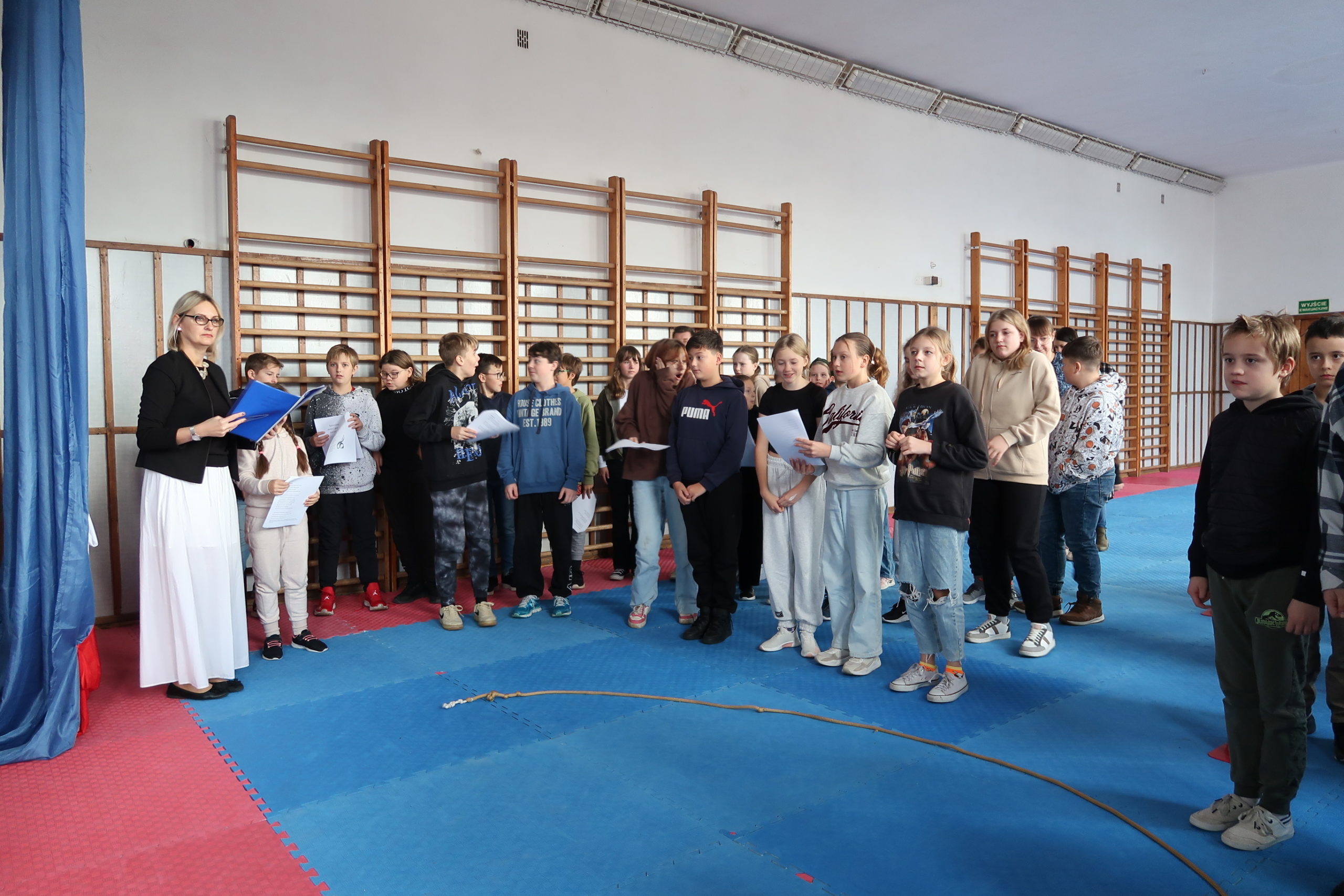 17 listopada 2022 r. uczniowie klas 4-6 spotkali się, by uczcić 104 rocznicę odzyskania niepodległości w sposób szczególny- nie jako widzowie ale jako uczestnicy KONCERTU PIOSENKI PATRIOTYCZNEJ. Każdy miał okazję zaśpiewać w licznym gronie, wspólnie przeżywać historię Polski, opisaną w pieśniach i piosenkach patriotycznych.