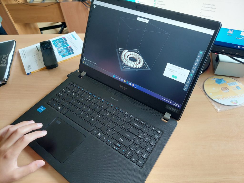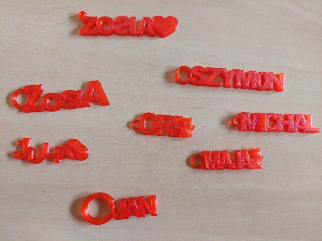 Dużym zainteresowaniem cieszy się drukarka 3D. Uczniowie poznają tajniki modelowania, projektują breloki ze swoim imieniem, a niektórzy nawet tworzą projekty wg własnego pomysłu. Przed nami jeszcze wiele do poznania i wykorzystania, m.in mikrokontrolery, roboty Photon, okulary VR.