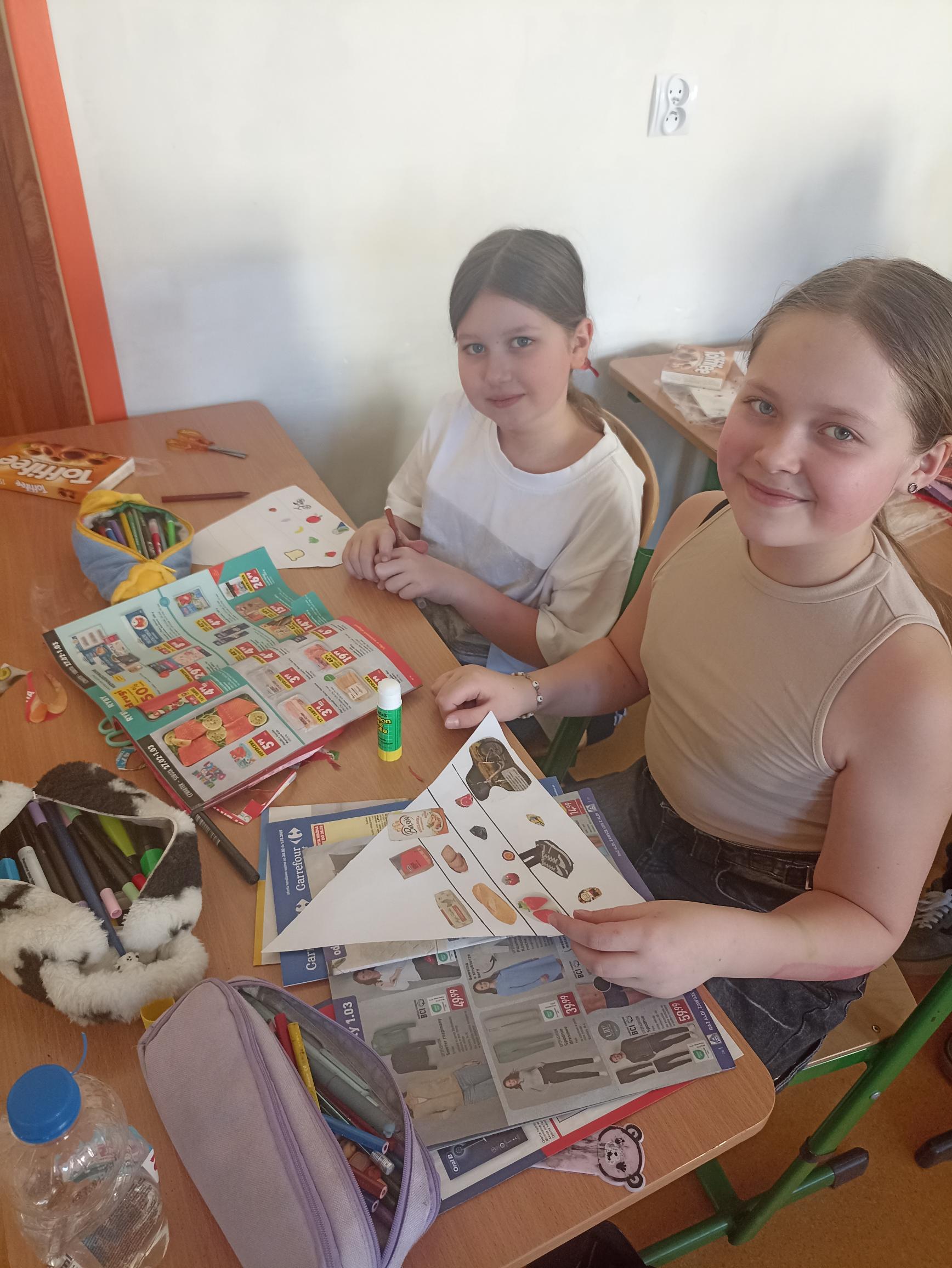 Podczas lekcji przyrody uczniowie klasy 4c  z zaangażowaniem tworzą własną piramidę zdrowego żywienia. Starannie przyklejają na odpowiednich poziomach piramidy produkty do niej pasujące. Dzieci w kreatywny sposób uczą się, jak ważne jest zdrowe żywienie.
