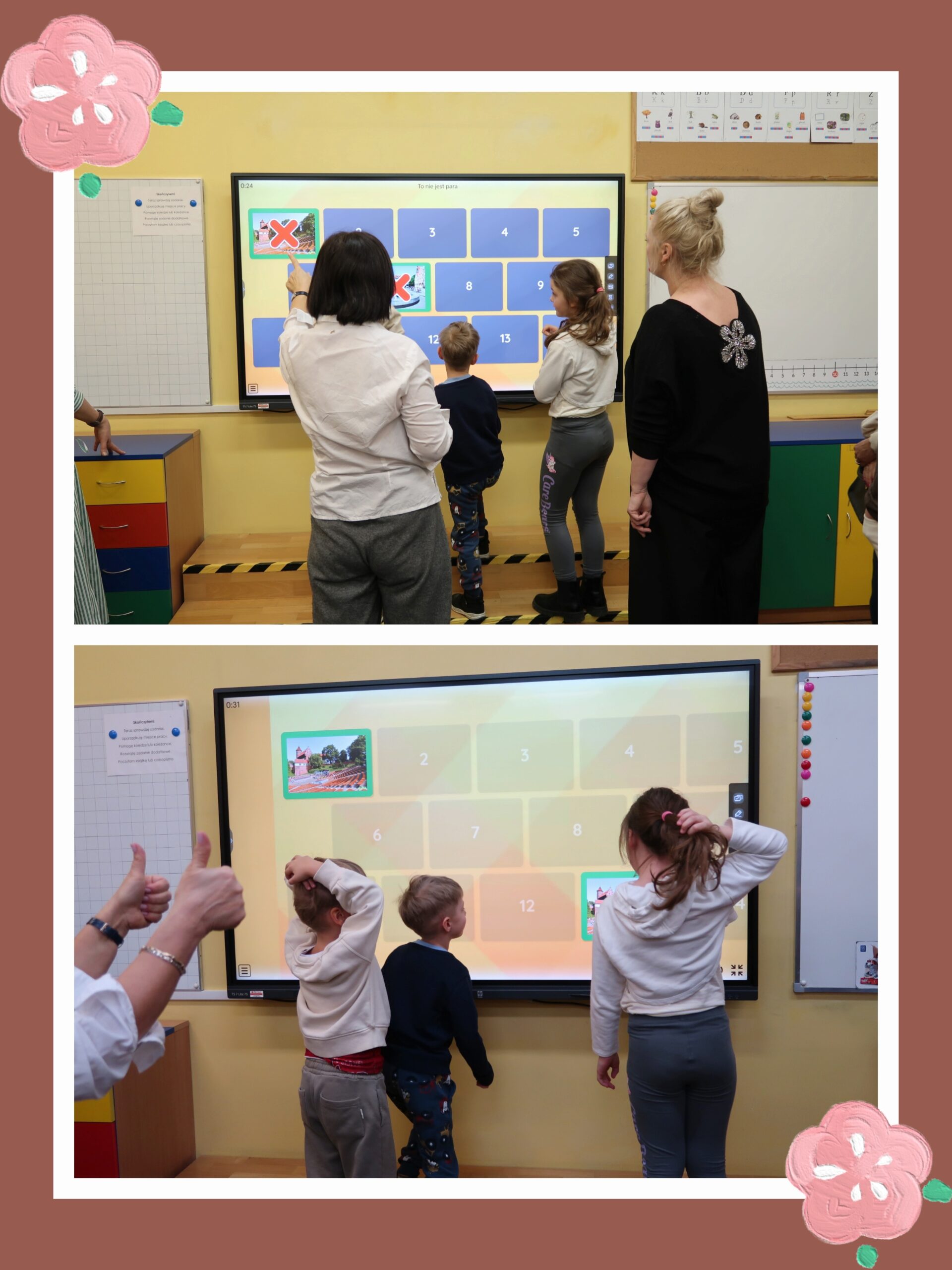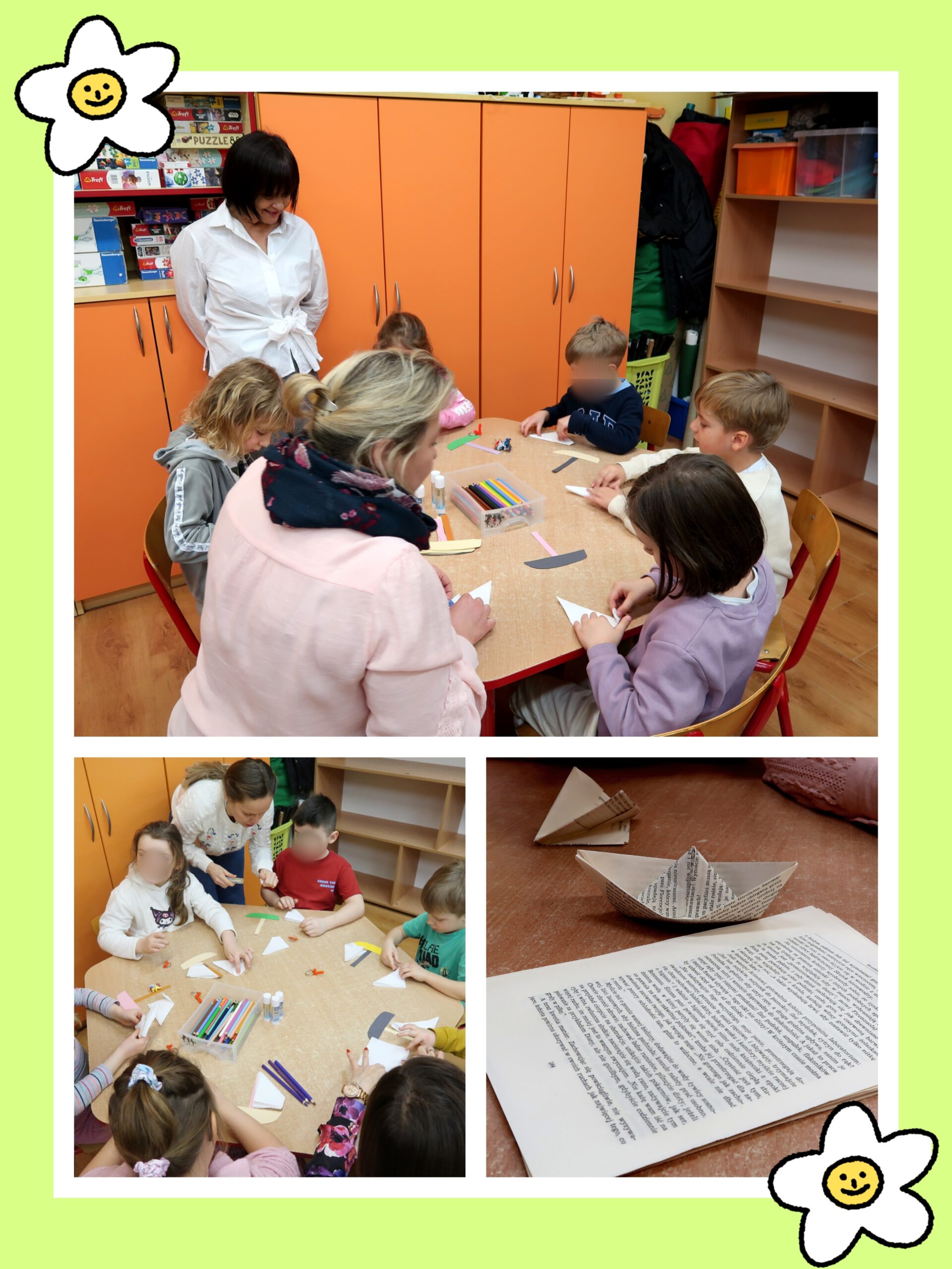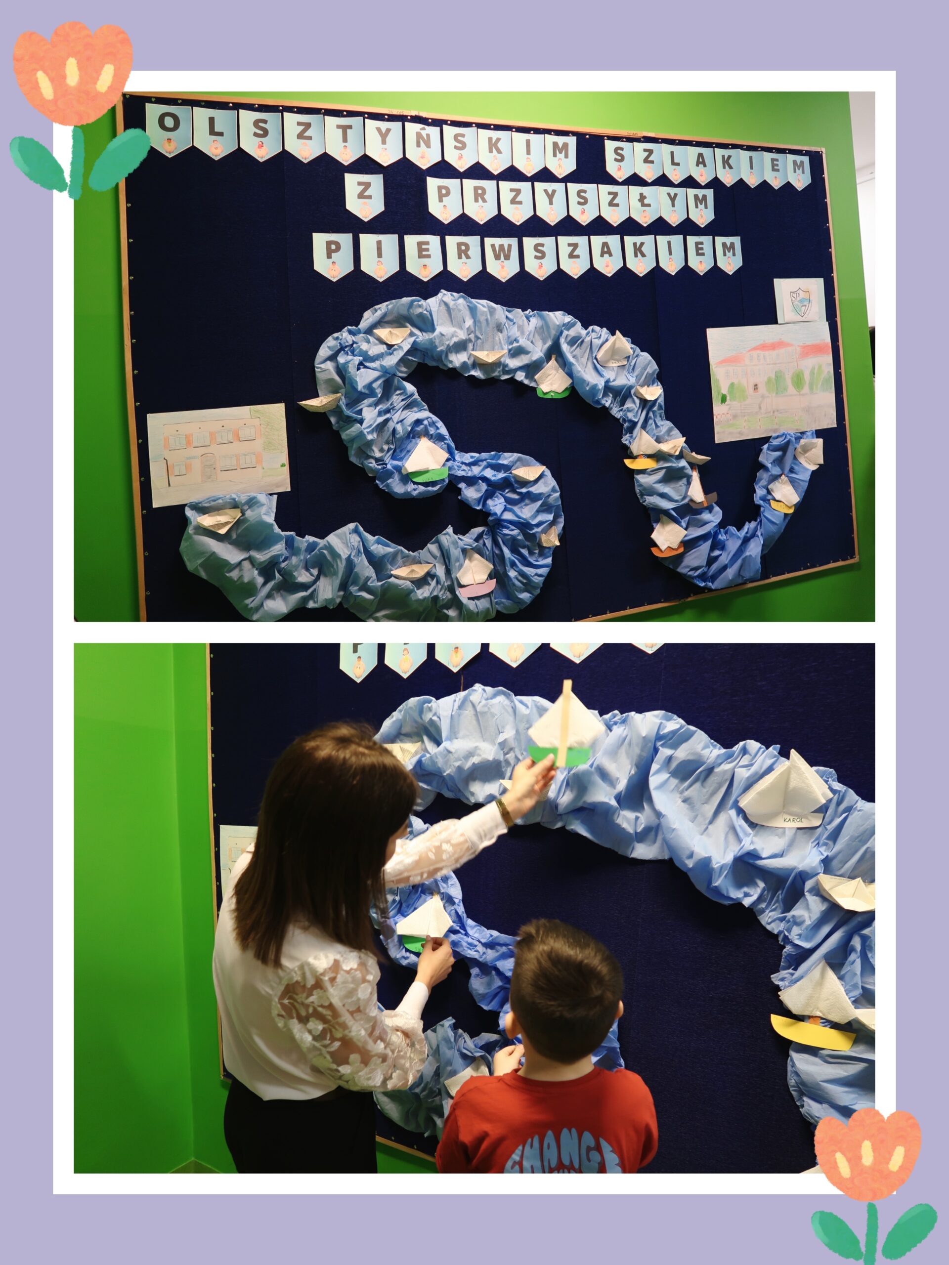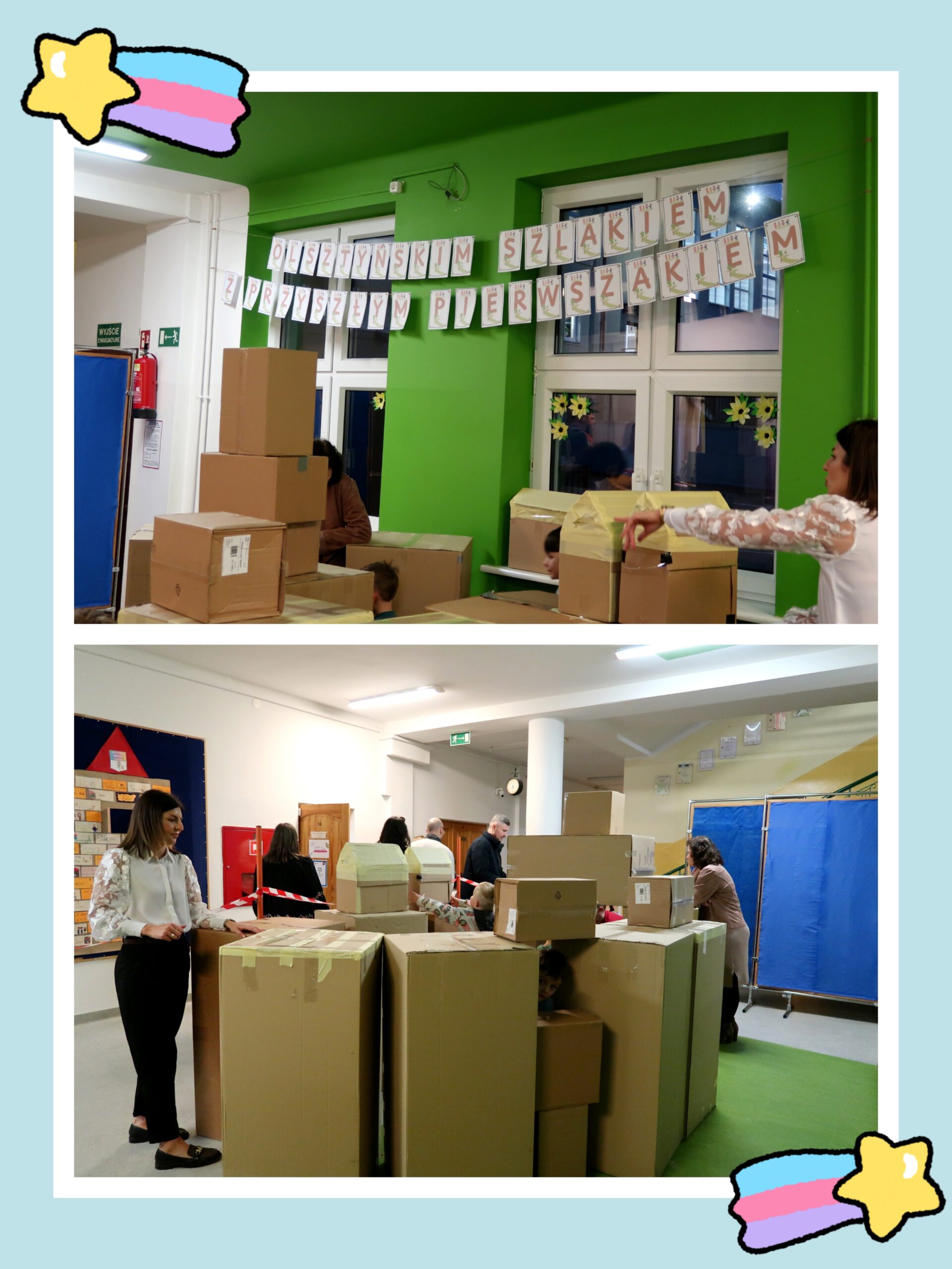 Dla dzieci i ich rodziców przygotowano również kreatywne zabawy, takie jak „Puzzlowy Olsztyn”. Aktywność polegała na układaniu elementów przedstawiających nasze miasto. Wspólnie zbudowano także „kartonowy zamek”, który można obecnie podziwiać na parterze szkoły. Wielkim zainteresowaniem cieszyły się również warsztaty pt. „Origami – łódkami po Łynie”, podczas których najmłodsi mieli okazję rozwijać swoje zdolności manualne i kreatywność.