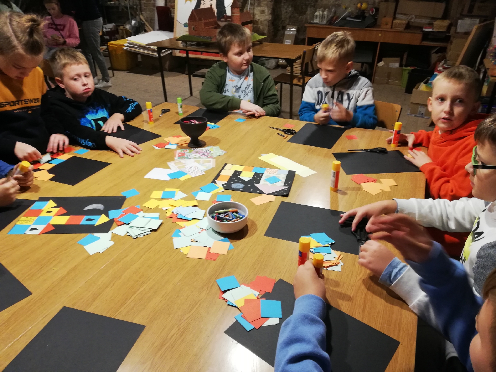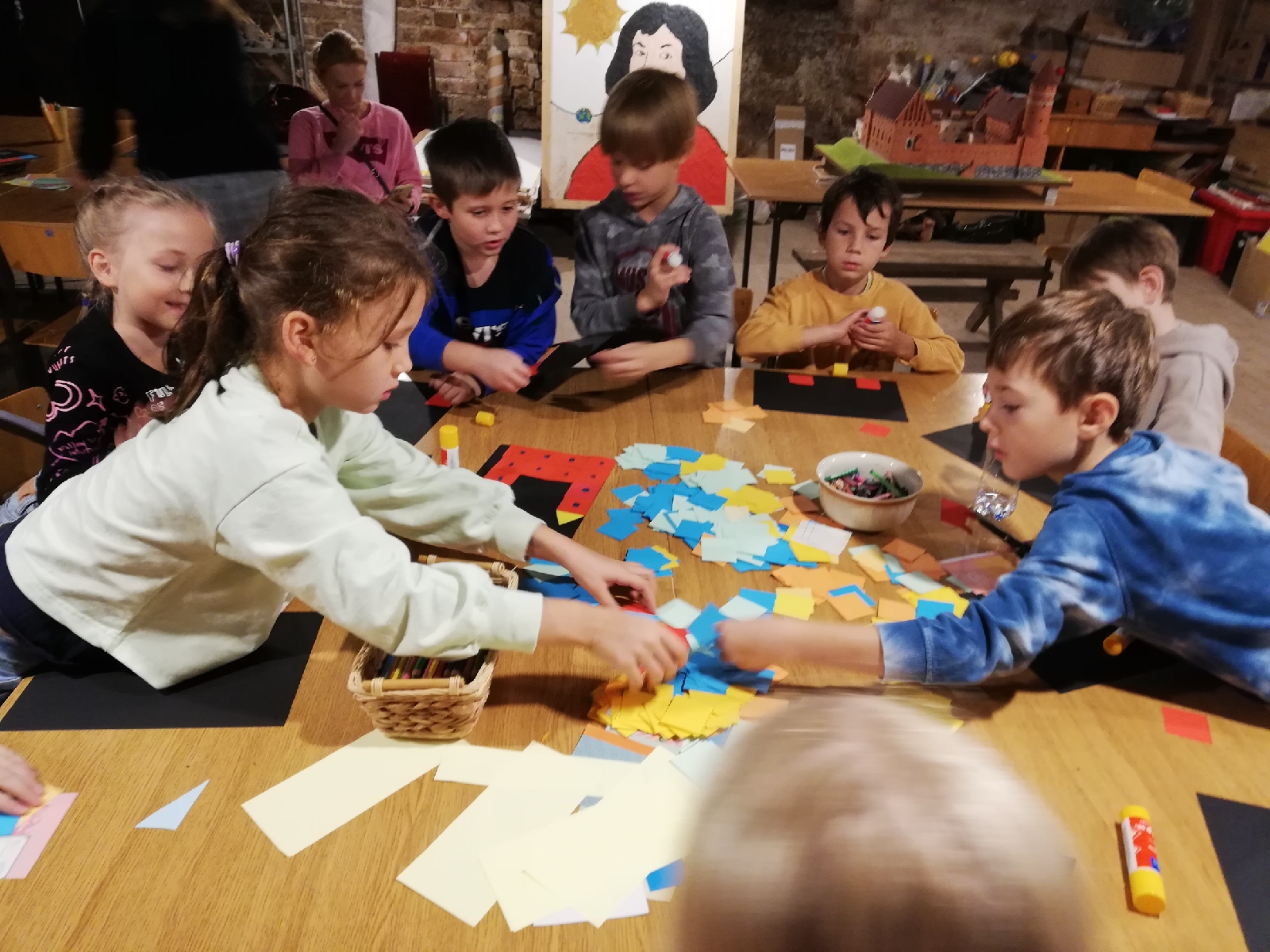 Zaczęliśmy od Muzeum Warmii i Mazur. W trakcie zwiedzania poznaliśmy tajemnice naszego zamku i jego mieszkańców. Obejrzeliśmy wiele pomieszczeń – od strychu po piwnicę. To tam budowaliśmy zamek z kolorowych figur i klocków.