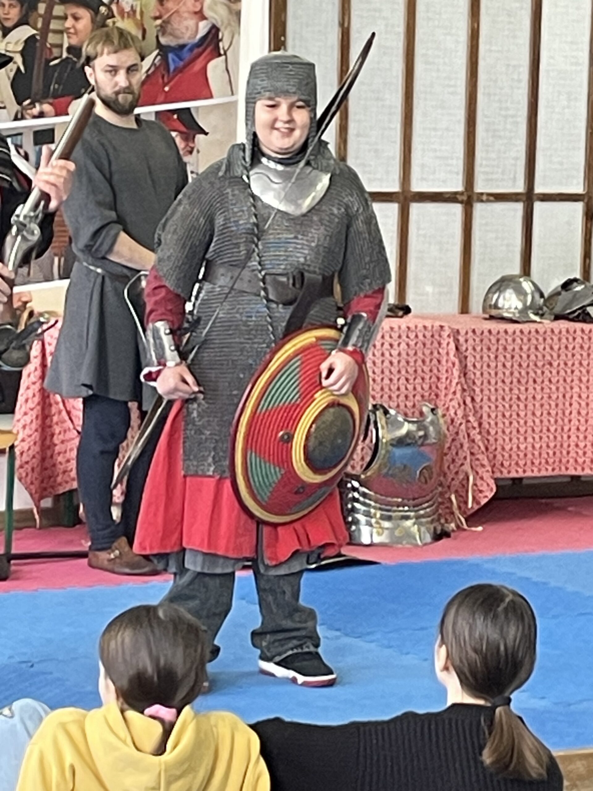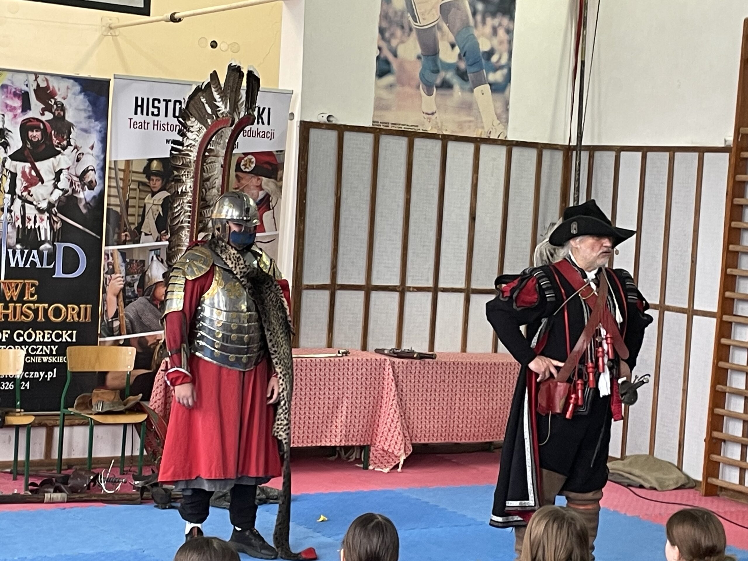 Klasy szóste podróżowały przez wiek XVII poznając pikinierów, muszkieterów i skrzydlatą husarię. Uczniowie poznali również elementy stroju szlacheckiego oraz podziwiali wspaniałe repliki broni: lance, kopie, piki, szable, rapiery, kosy, muszkiety i różnego rodzaju pistolety. To wszystko wzbogacone było piękną mową i humorem pana Krzysztofa Góreckiego, który słynie z organizacji corocznej rekonstrukcji bitwy pod Grunwaldem. To była wspaniała podróż w czasie.