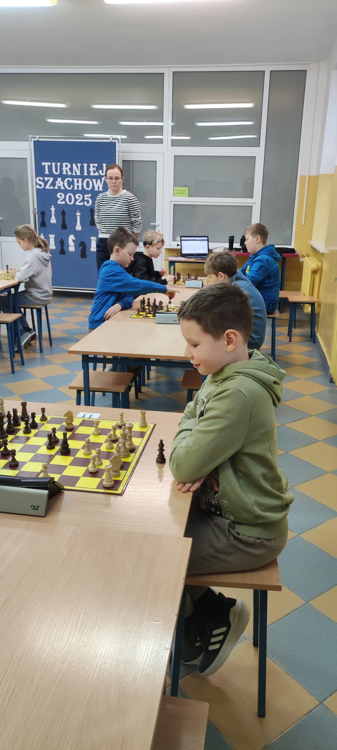 W styczniu w naszej szkole odbył się Turniej Szachowy dla najmłodszych. Został on podzielony na dwa terminy ze względu na dużą ilość uczestników. Rozgrywki klas 3 miały miejsce 13 stycznia, klas 1 – 2 dnia 20 stycznia. W turnieju wzięło udział 44 szachistów i szachistek z klas 1 – 3, którzy rozegrali 5 rund, po 7 minut na partię dla każdego zawodnika. Turniej obfitował w wiele zaciętych pojedynków, a każdy szachista i szachistka dawał z siebie wszystko, aby zdobyć puchar. Były też niespodzianki oraz radości i smutki, jak to w sporcie bywa. Na szczęście młodzi adepci królewskiej gry stanęli na wysokości zadania, a partie toczyły się fair play. Zwycięzcy zostali nagrodzeni pucharami, a każdy z uczestników otrzymał mini szachy magnetyczne. Nagrody ufundowała Rada Rodziców. Merytoryczną opiekę nad turniejem sprawowały panie – Anna Czartoryska i Katarzyna Kaczmarska, a koordynatorem turnieju był nauczyciel świetlicy – Dorota Ankiewicz.