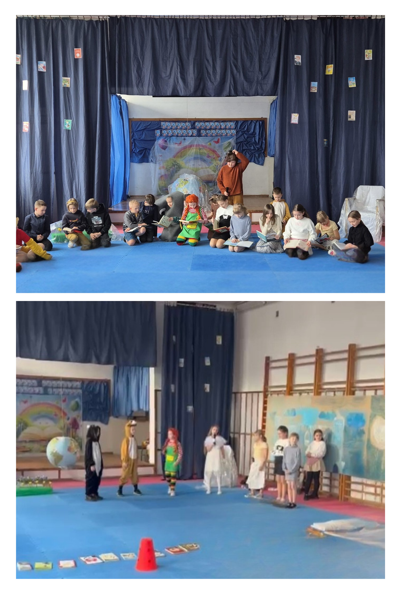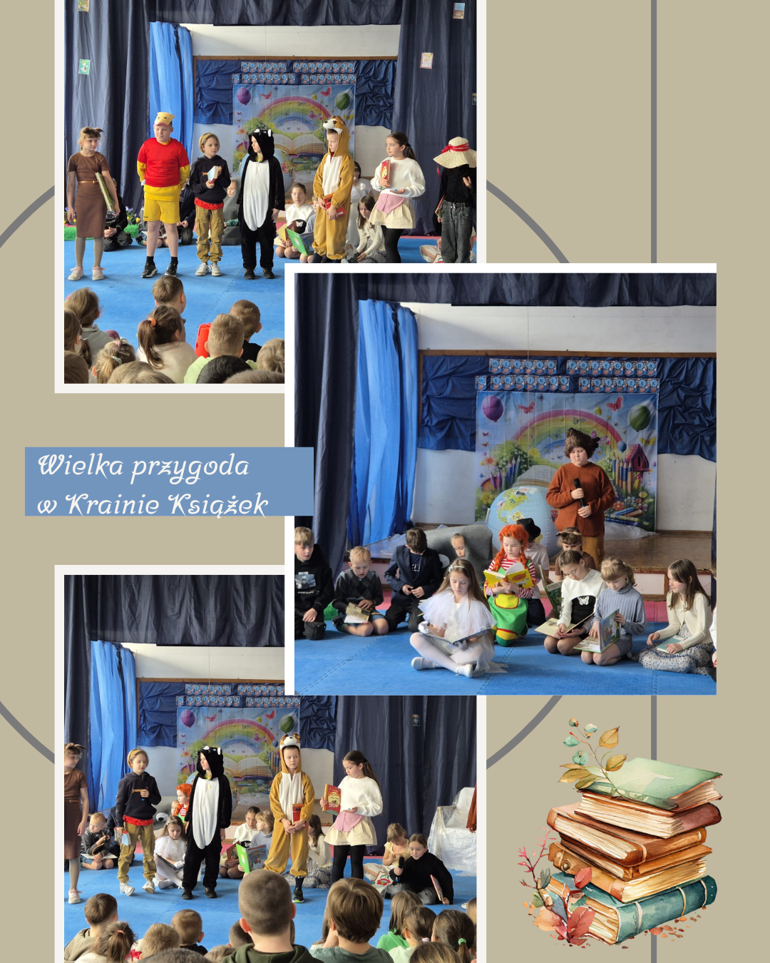 W minionym tygodniu sala gimnastyczna naszej szkoły zamieniła się w zaczarowaną scenę, na której uczniowie klasy III B zaprezentowali wyjątkowe przedstawienie pt. „Wielka przygoda w krainie książek”. W spektaklu nie zabrakło emocji, humoru i ważnego przesłania, a wszystko to dzięki naszemu ogromnemu zaangażowaniu – przedstawienie, scenariusz i dekoracje były naszym wspólnym pomysłem i dziełem.